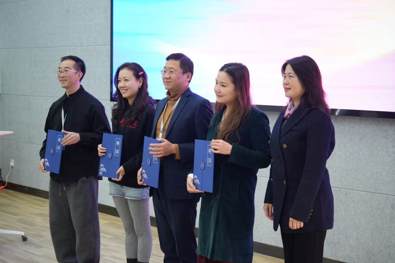 企业导师聘任仪式同步举行,上海立达学院副校长郭霖为上海长宁虹桥街众妙公益文化发展中心理事长邬稚晖、上海嘉会国际医院社会工作办公室负责人狄馨雨(Bella)、上海市金茂律师事务所合伙人金文玮、中国PFH动物辅助干预项目创始人吴起颁发聘任证书。